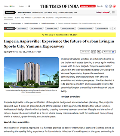 Experience a new benchmark of luxury at Sephyra by Imperia, Sports City, Yamuna Expressway — beside the Buddha International Circuit and Golf Course. Discover thoughtfully designed 2 & 4 BHK residences that blend elegance, comfort, and smart living, surrounded by open spaces and serene views.